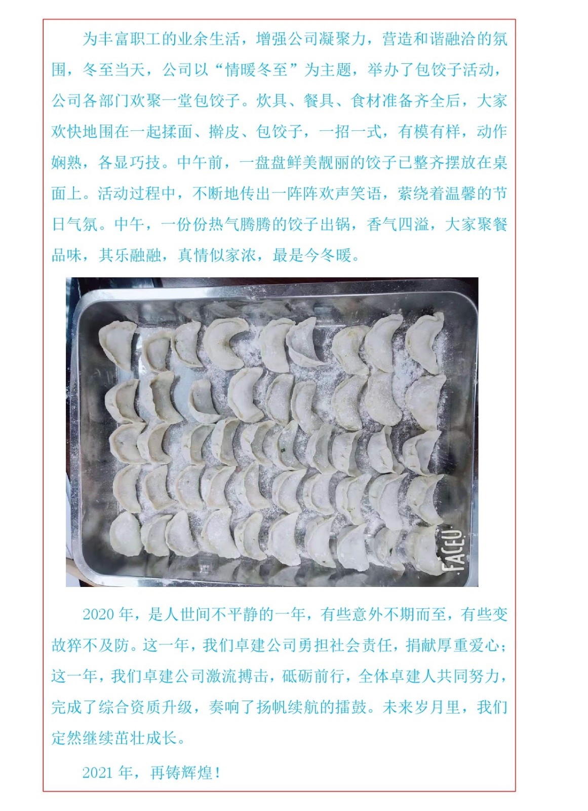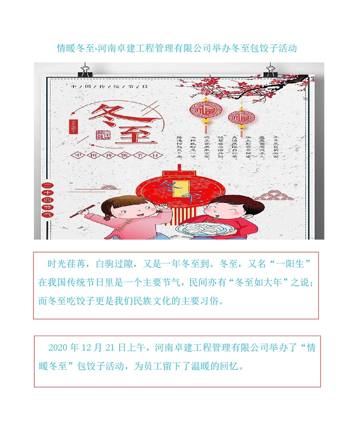 【情暖冬至】河南卓建工程管理有限公司舉辦冬至包餃子活動