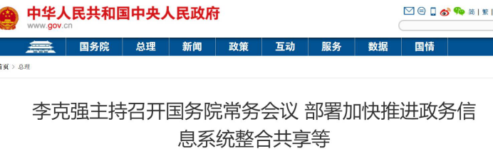 國務(wù)院總理李克強(qiáng)12月6日主持召開國務(wù)院常務(wù)會議,部署加快推進(jìn)政務(wù)信息系統(tǒng)整合共享,以高效便捷的政務(wù)服務(wù)增進(jìn)群眾獲得感;